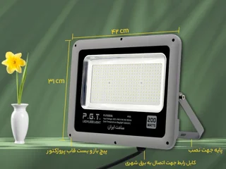 پروژکتور ۲۰۰وات برند پی جی تی با طراحی مقاوم و ضد آب، مناسب برای استفاده در فضاهای باز و محیطهای مرطوب است. این پروژکتور با نوردهی قوی و مصرف انرژی بهینه، گزینهای ایدهآل برای روشنایی فضای خارجی و صنعتی میباشد.